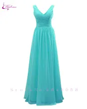AliExpress.com Product - Waulizane Chic Silk Chiffon A-Line Lace Up Bridesmaid Dresses V-Neck Floor-Length Sleeveless Formal Dress For Special Occasion